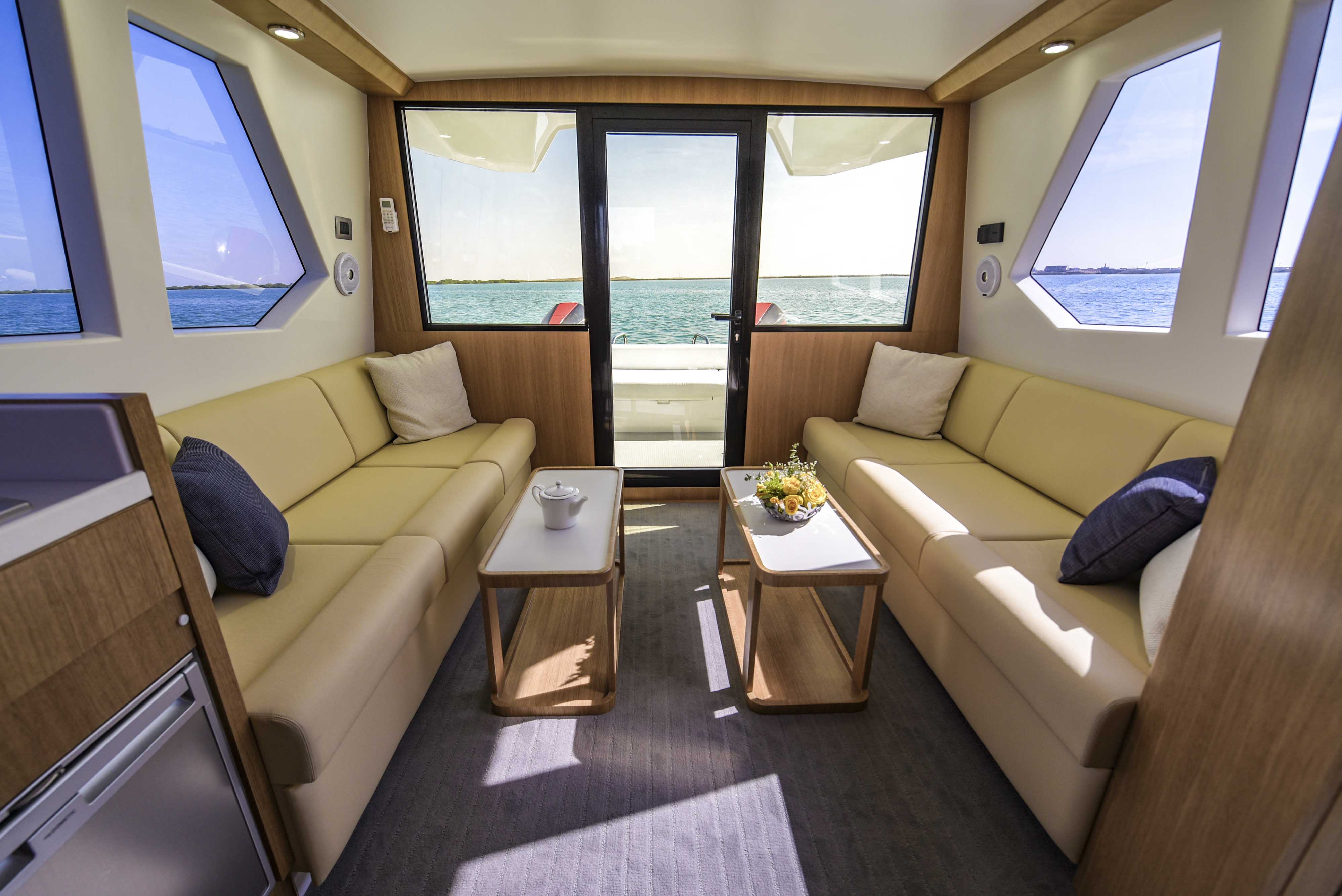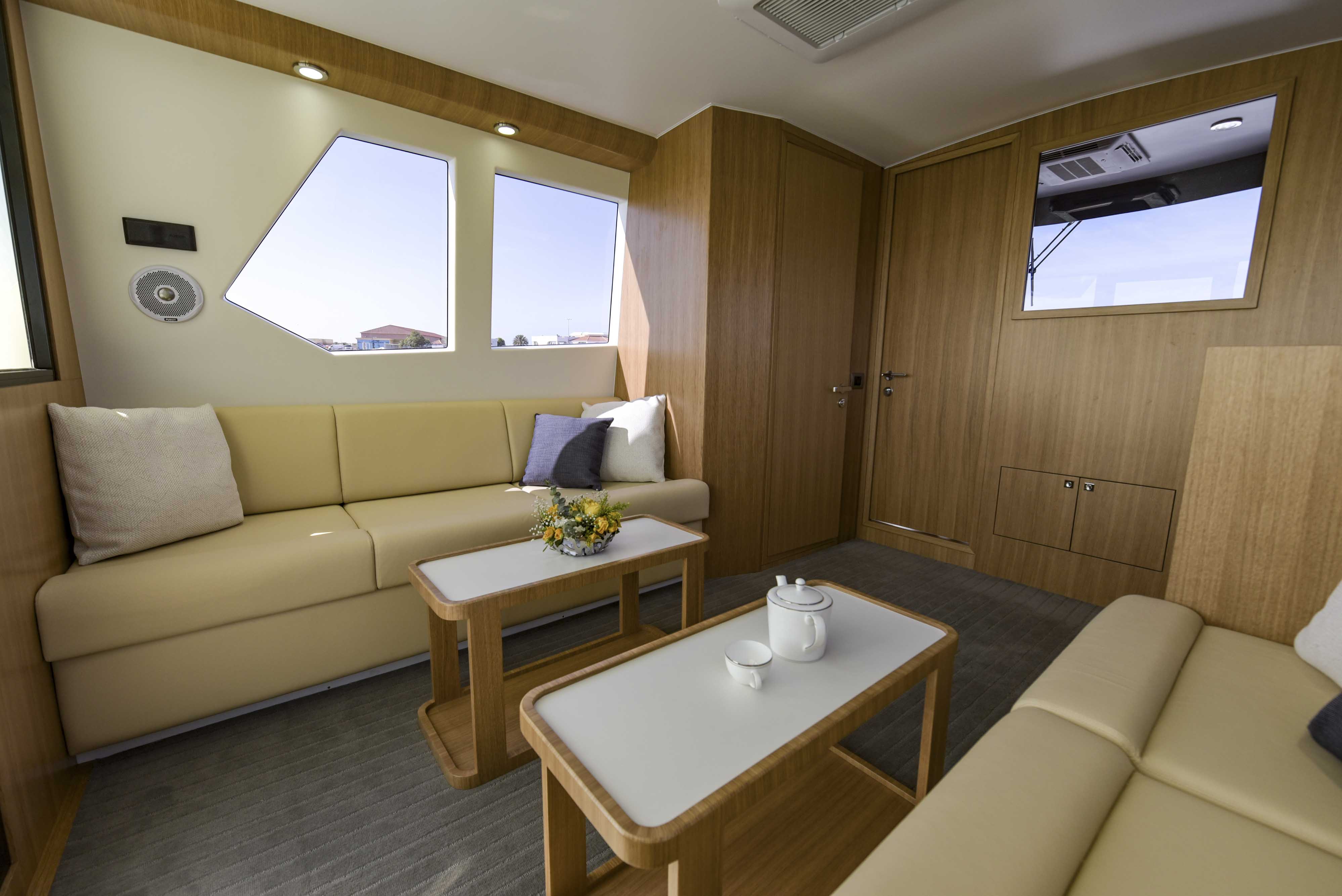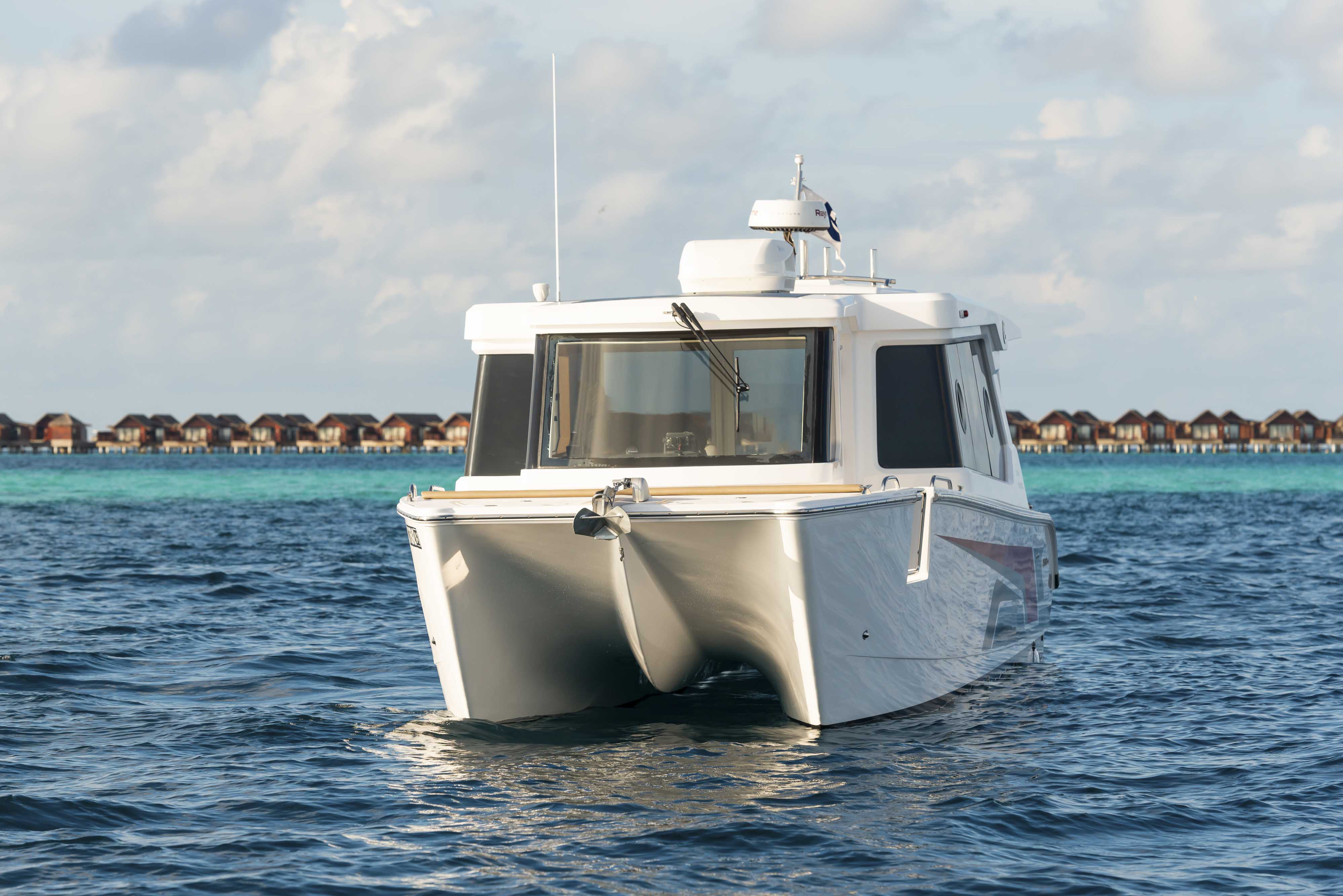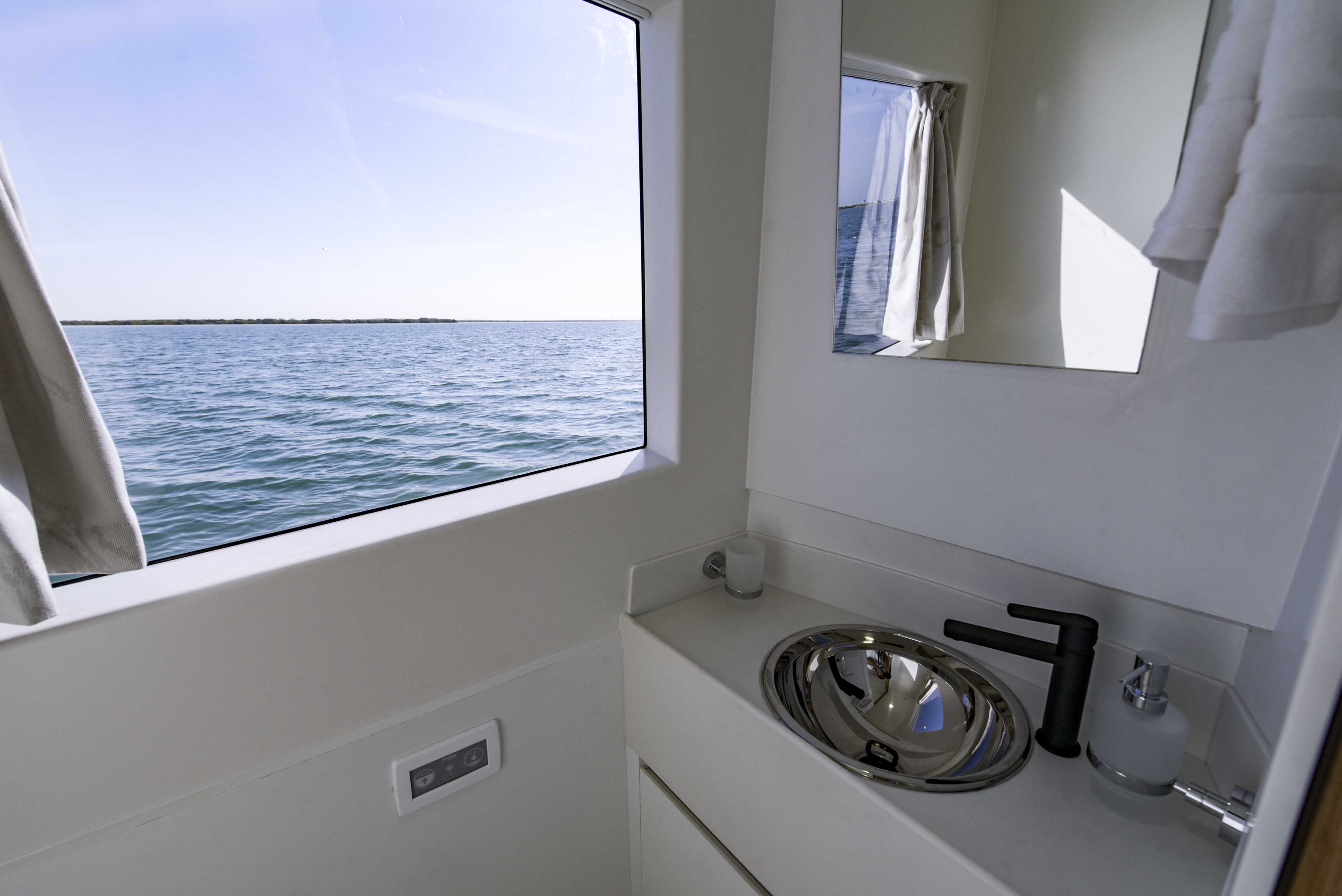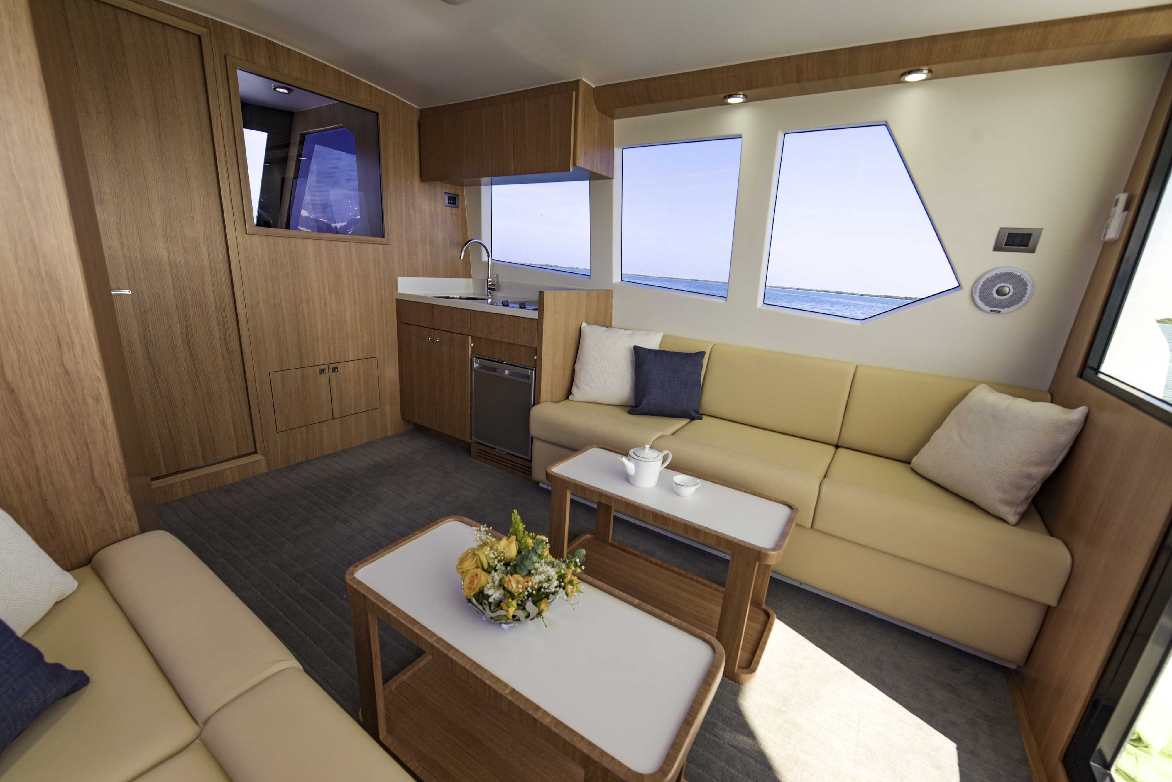 The advanced hull design, stretching from the shipyard’s pedigree in building performance catamarans, also offers much more power options than conventional catamarans.